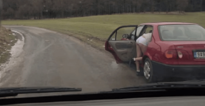 У девушки прямо посреди дороги прокололась шина. Девица вышла из машины, чтобы ее сменить, и случайно прищемила дверью юбку так, что впоследствии вовсе осталась без нее. Отлично, лучше не придумаешь… Как раз мимо проезжали двое подозрительных на вид мужчин. Можно только догадываться, что произошло дальше… Но такого поворота событий ты уж точно не ожидал!