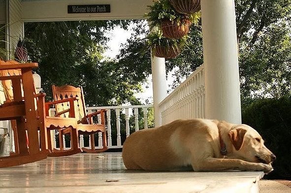 Однажды человек шел мимо некоего дома и увидел старушку в кресле-качалке, рядом с ней качался в кресле старичок, читающий газету, а между ними на крыльце лежала собака и скулила, как будто бы от боли. Проходя мимо, человек про себя удивился, почему же скулит собака.